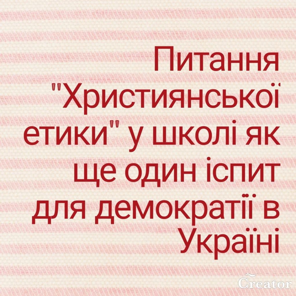 ПИТАННЯ «ХРИСТИЯНСЬКОЇ ЕТИКИ» У ШКОЛІ ЯК ЩЕ ОДИН ІСПИТ ДЛЯ ДЕМОКРАТІЇ В УКРАЇНІ