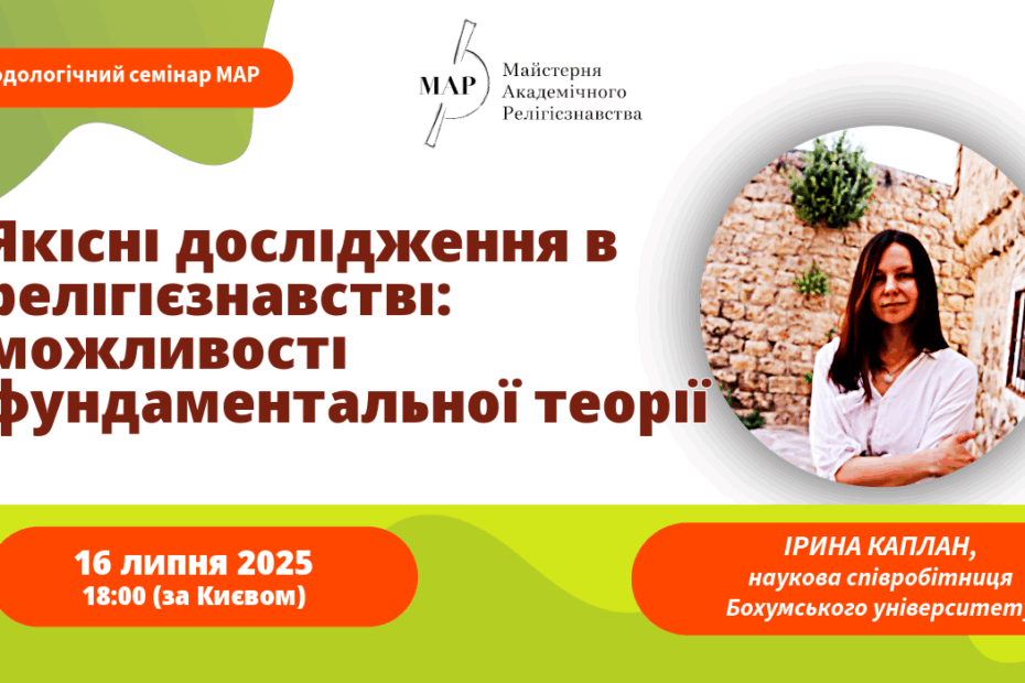 ГО “Майстерня академічного релігієзнавства” запрошує взяти участь у методологічному семінарі, де з доповіддю виступить Ірина Каплан, наукова співробітниця Бохумського університету (Німеччина).